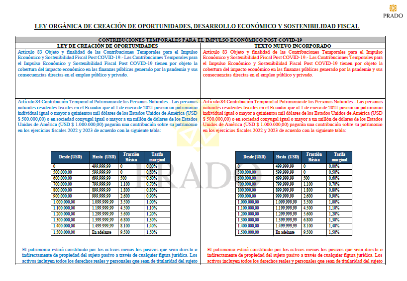Comparativo – Proyecto “Ley Orgánica de Creación de Oportunidades, Desarrollo Económico y Sostenibilidad Fiscal” 29/09/2021L. PavónNo Comments